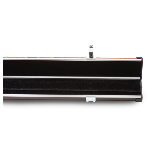 The ¾ jointed cue case allows for the storage of cues that have a joint three quarters along the length of the cue, meaning they require a specific shape of case to accommodate them. The style is characterised by its shorter and wider size, with three padded channels as a 3-piece cue case, which are often made of flocked foam – differing to the traditional two in normal cue cases.
