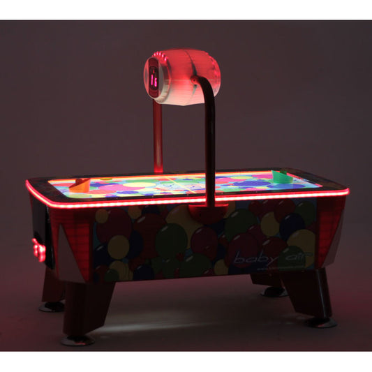 We stock over a dozen different options when it comes to air hockey tables. Whether you want a full-size air hockey table at eight feet long, or a baby air hockey table, we are sure to have something to accommodate your needs. We have air hockey tables for sale at a range of price points, so you should be able to find something to suit your budget. The costlier options also include a scoreboard display at the top, along with side boards, so you can easily keep track of the game and your eyes on the puck, but even our cheapest option has an electronic score display. Choose between designs that are sporty, series, or fun, to get the right vibe for your air hockey game.
