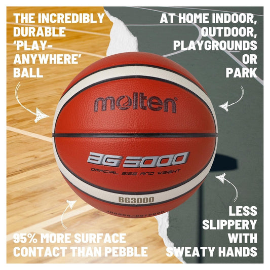 Molten BG3000 Basketball - 12 Panel Synthetic Leather (Indoor & Outdoor) - Size 6