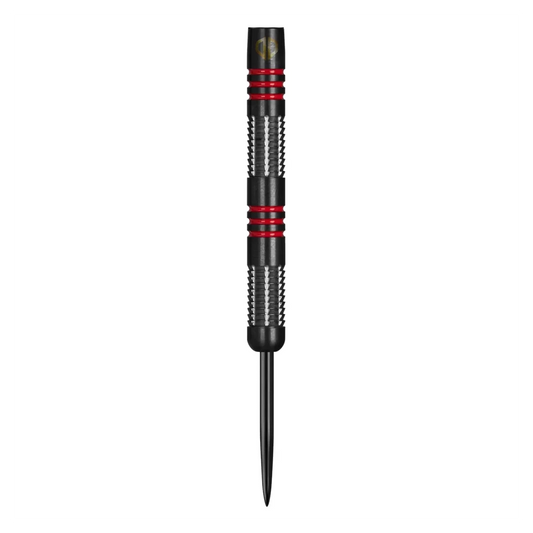 Datadart Element 74 Steel Tip Darts - Manufactured from 90% tungsten, featuring a matt black titanium coating, razor grip and accentuated Red rings.