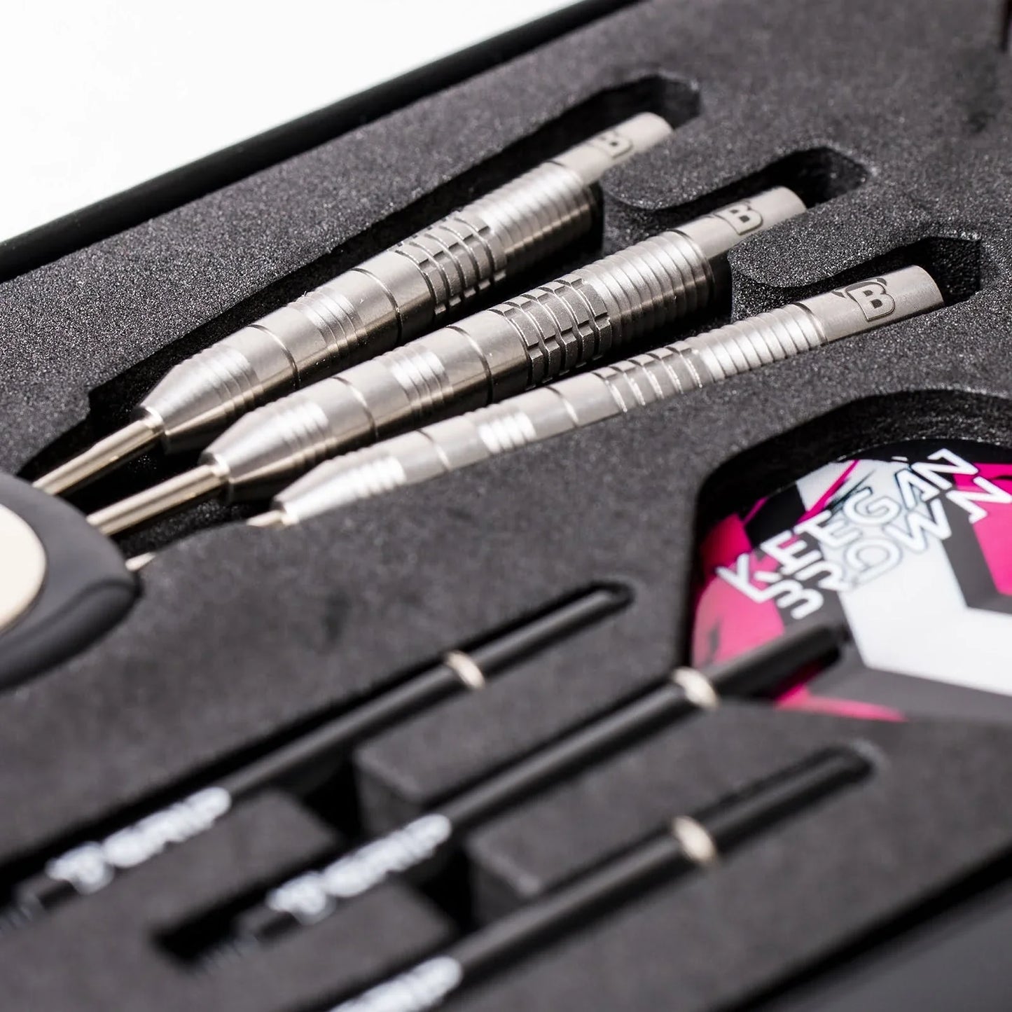 A B-Grip-2 SL Shaft and its B-Craft Flight fit harmoniously with Keegan's design and complete his dart. Keegans Dart was designed in the versions 22g and 24g. Keegan "The Needle" Brown has been playing darts for over 20 years and has been a darts professional for over 10 years. The Englishman lives in Newport on the Isle of Wight.