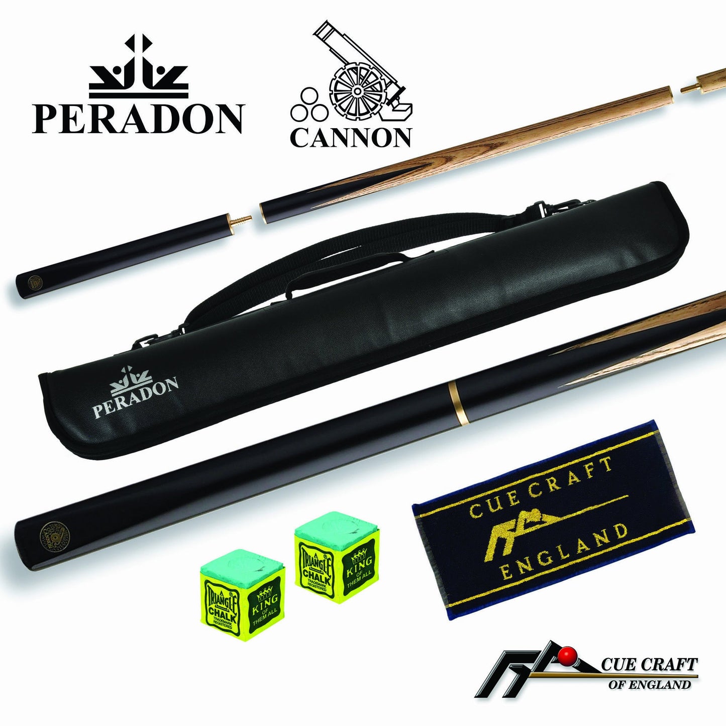 The Cannon Range of cues is manufactured for Peradon to offer exceptional value for money. All cues feature brass ferules, blue chrome tips and are fitted with solid brass joints. Three quarter jointed cues feature the Cannon Quick Release Jointing System