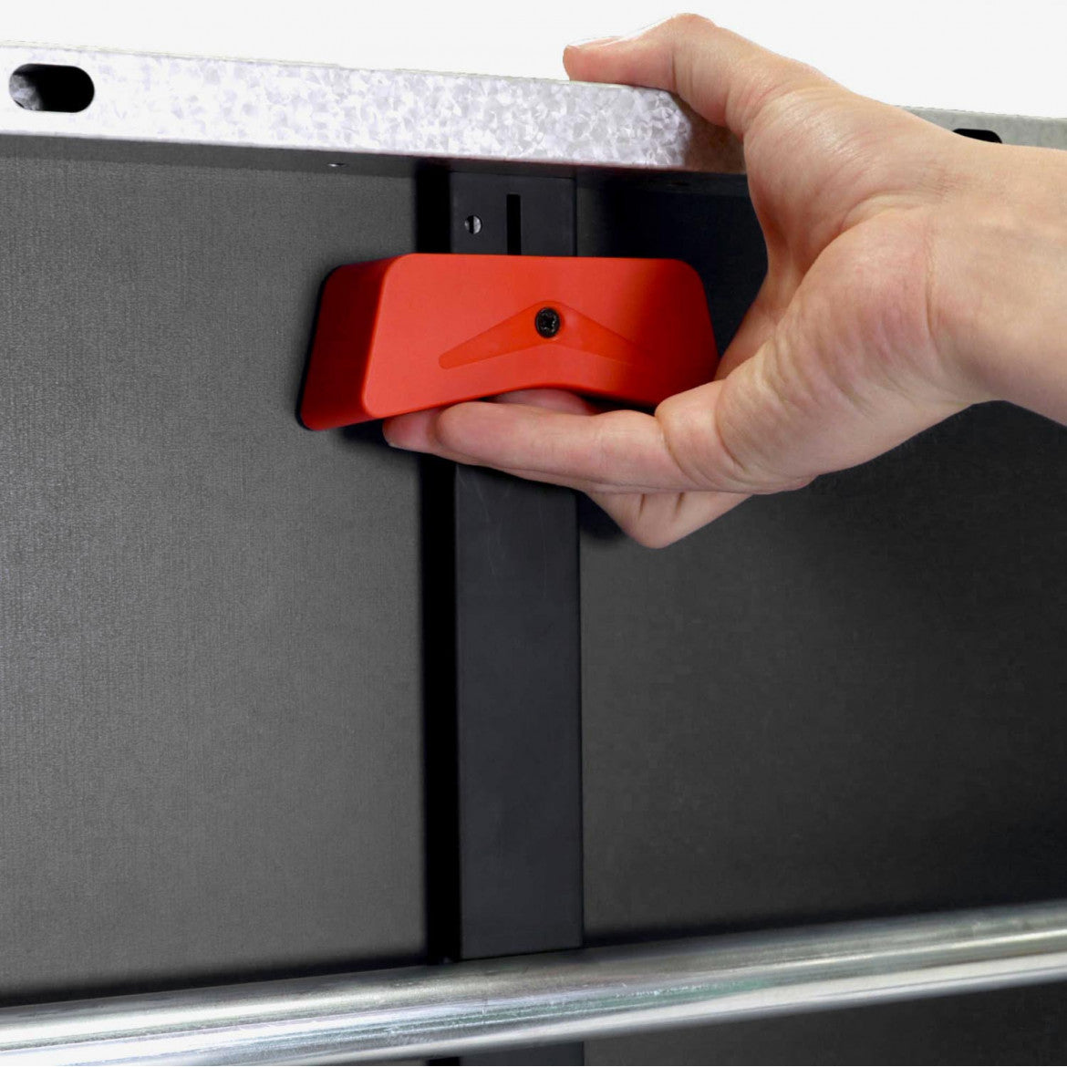 The deep 50 mm high frame of the 500 Indoor table ensures the playing surface is both stable and flat. The Aluzinc® material is corrosion resistant providing robustness and durability for many years to come.