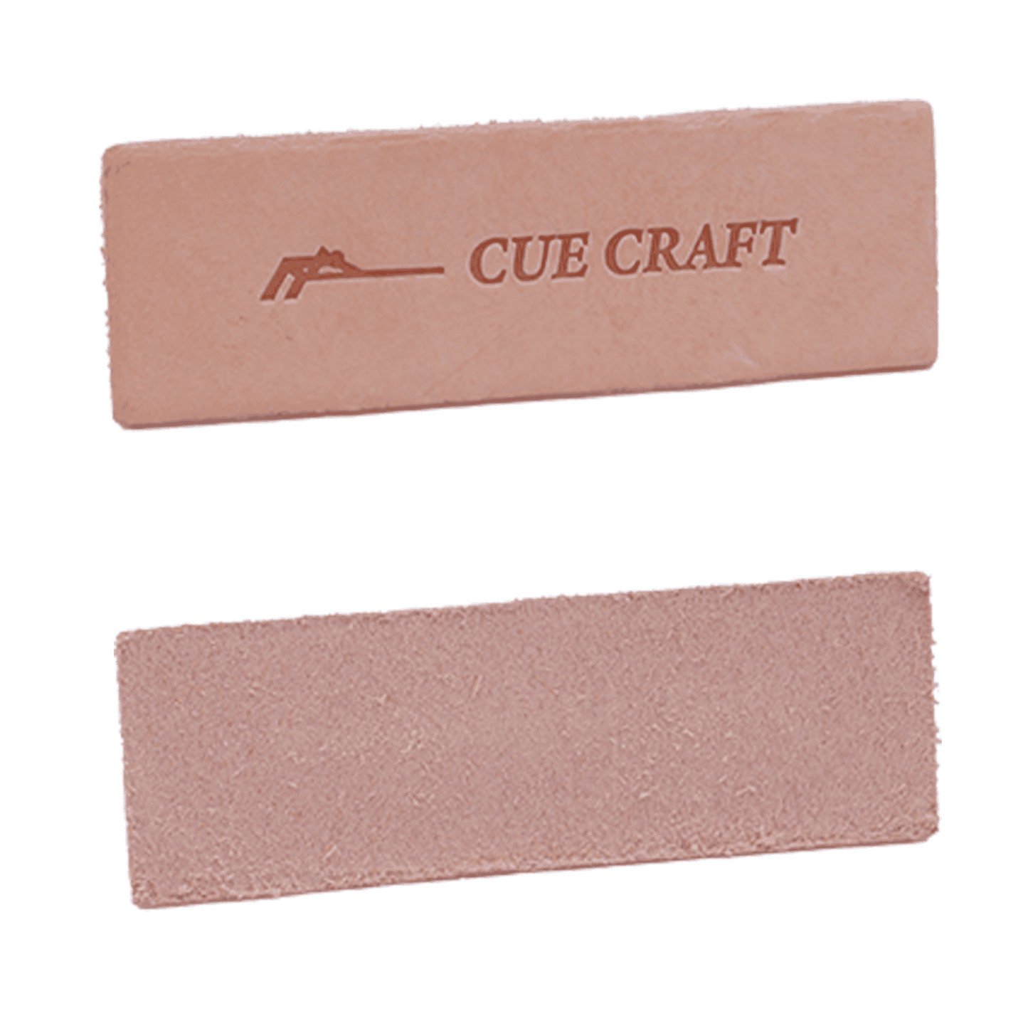 Cue Craft Genuine Leather Cue Tip Burnisher - These hard strips of leather can be used to rub the sides of a layered tip so that the individual layers can no longer be distinguished. This small strip of leather is stamped with the Cue Craft logo and easily fits in most cue cases.