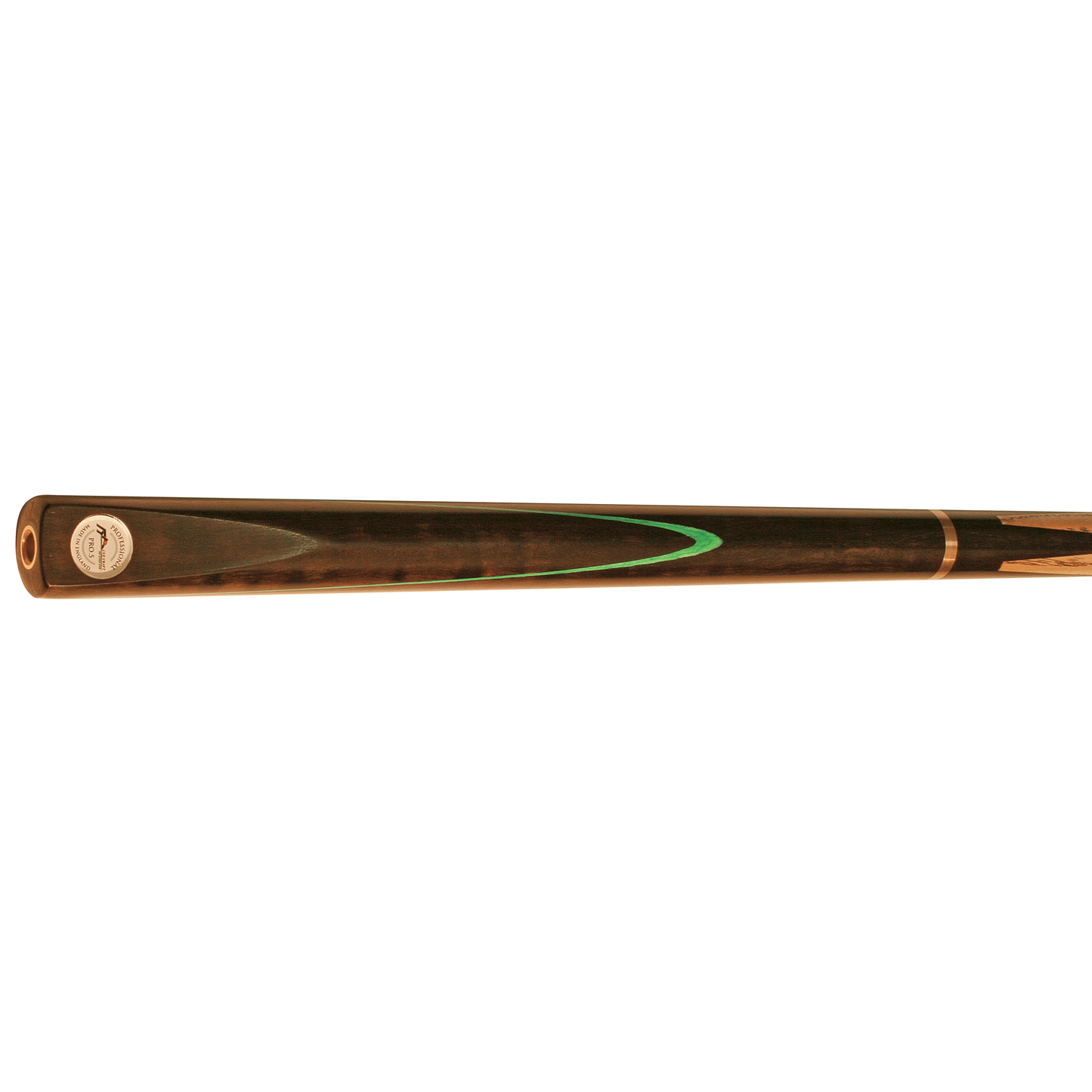 Cue Craft Pro 5 Snooker Cue – Machine spliced cue manufactured by Cue Craft, the butt is made from solid Ebony with an Ebony Wedge and a Green Veneer and the shaft is a hand selected best quality Ash. The cue comes with a mini butt joint for optional extensions. The polished solid brass joint features a semi quick lock action taking about a turn and a half to unscrew. This cue is made to your specifications, therefore the Joint Option, Cue Length, Cue Weight, Tip Size and Tip Make are determined by your specifications.