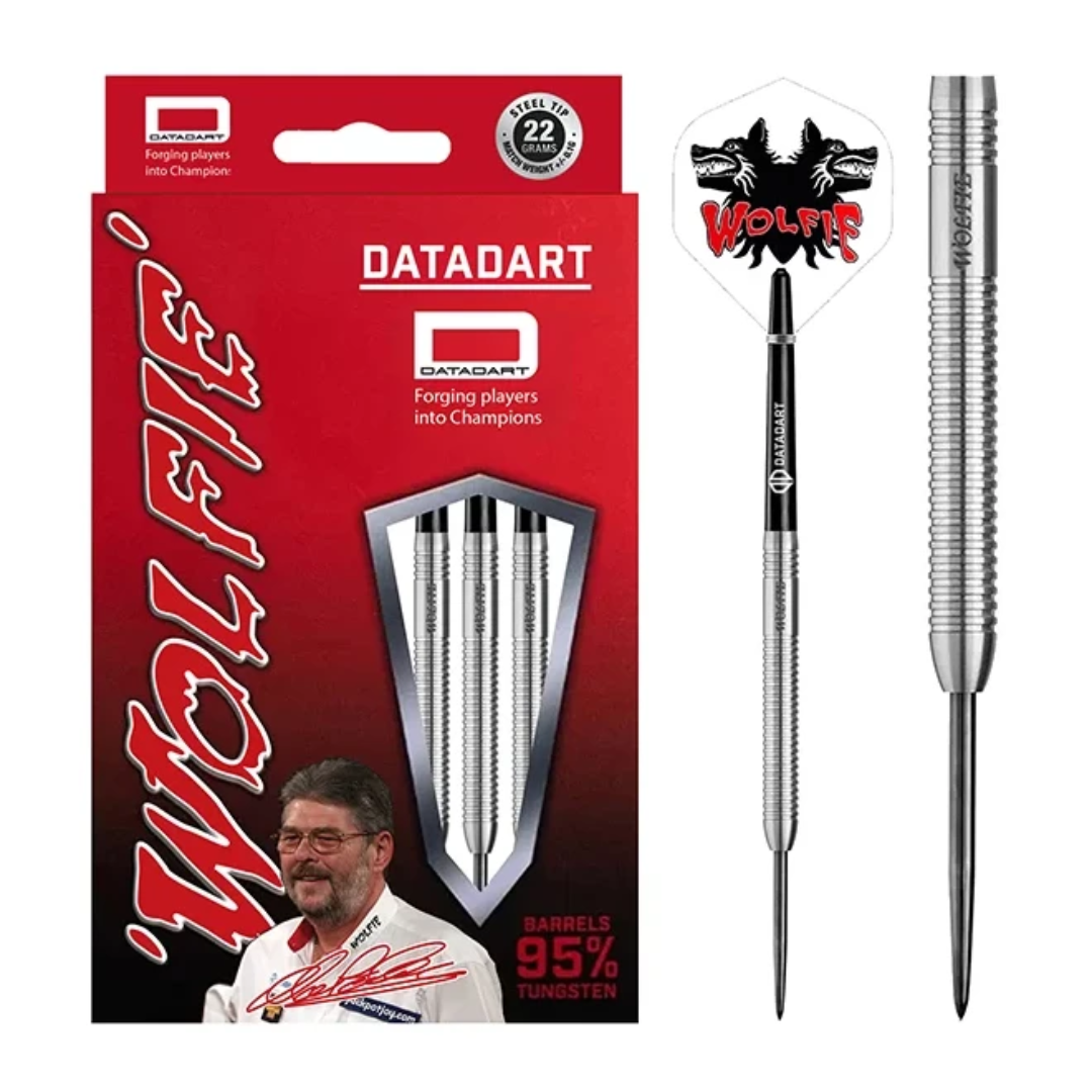 Datadart Martin Adams 26g Wolfie Steel Tip Darts - This 95% tungsten barrel has been precision manufactured to give an ultra slim, dynamic result. This beautiful, slim dart, with precision ringed grip, is an ever popular dart.