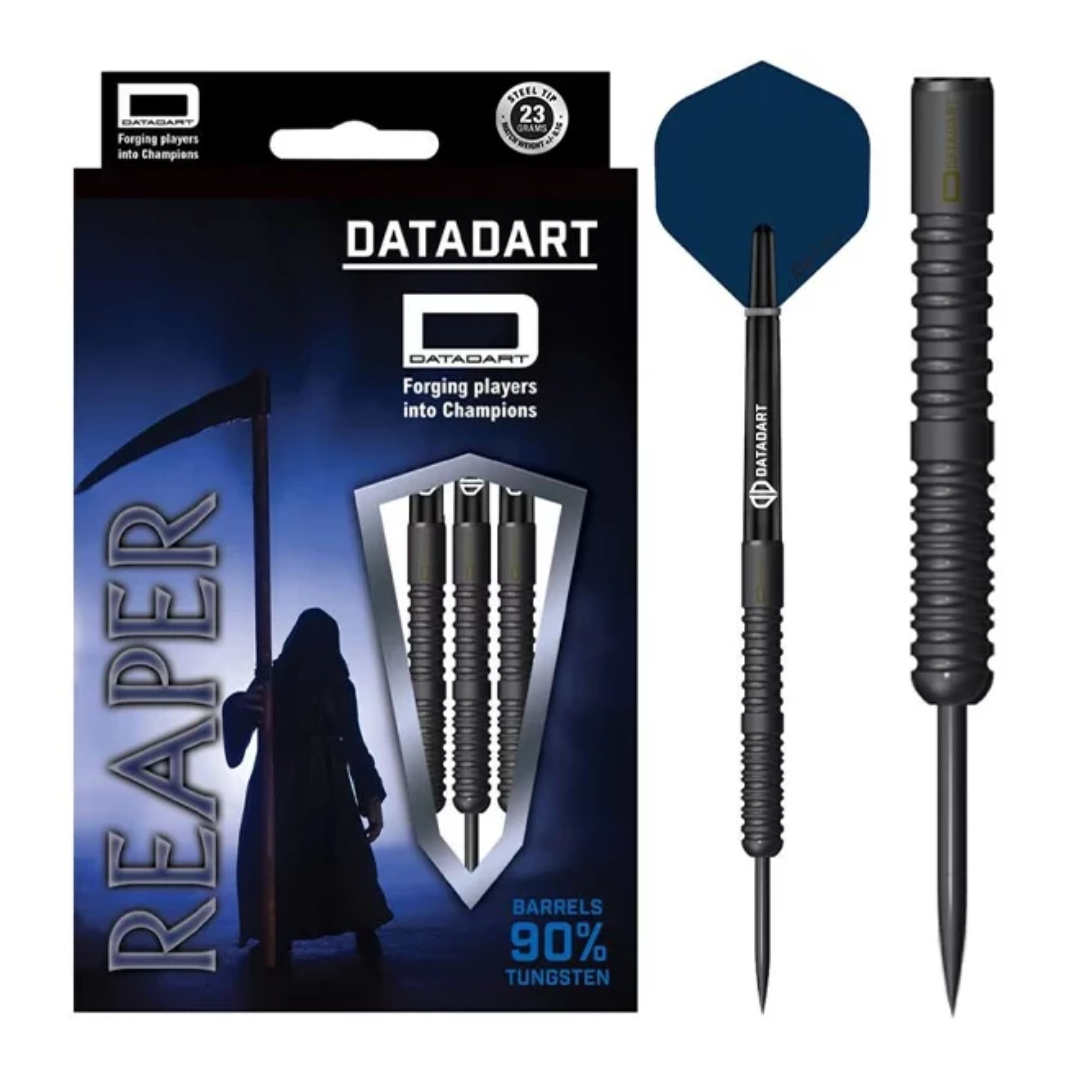 Datadart Reaper 23g Steel Tip Darts - Datadart Reaper darts are made from 90% tungsten with a black PVD coating featuring a slim ringed radial grip to the front of the barrel and a smooth wider radial grip to the rear, sure to enhance your grip on the dart.
