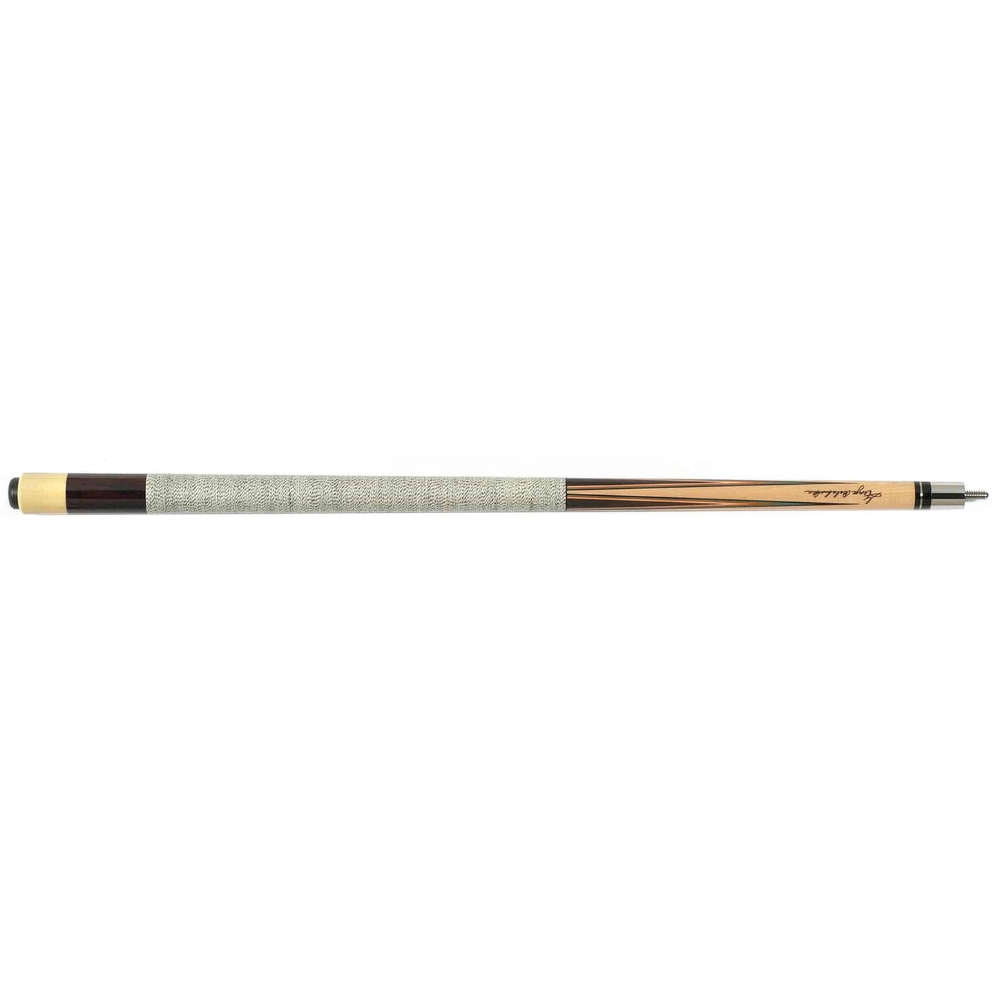 George Balabushka GB1 American Pool Cue - This cue has a Professional quality Canadian maple shaft with pro taper. This cue also comes with a high impact ivorine ferrule, a high quality white Irish linen wrap with green specks, a Le Prof tip & signature. This is the cue from the movie ‘The Color of Money’. This classic cue gives the player perfect weight & balance. It has a natural-stained birdseye maple forearm with 4 spliced rosewood chevrons with maple, red, green & ebony veneers. The butt sleeve is made of rosewood, with a brushed stainless steel pilot joint which is bracketed by 2 thick nickel silver rings.
