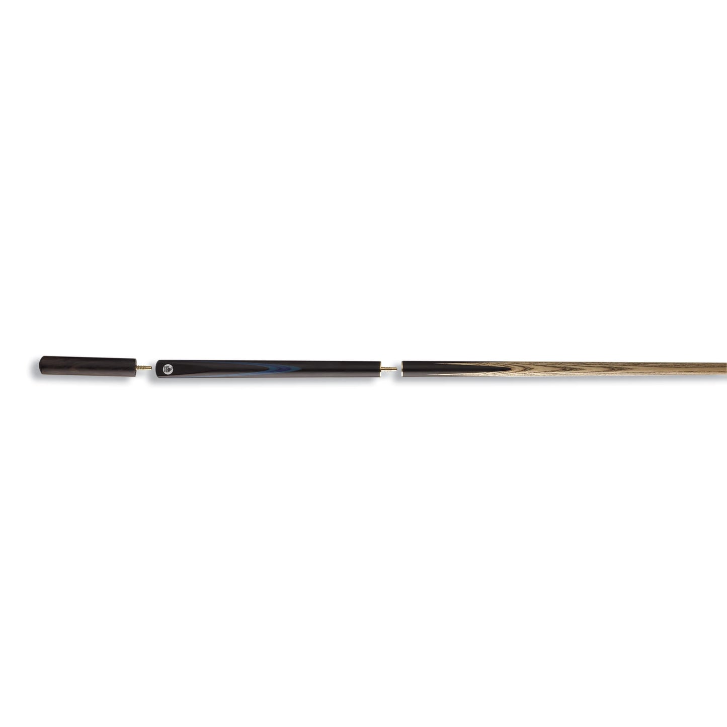 Cannon Grande 3 Quarter Jointed Snooker Cue with Mini-Butt - Manufactured from sports grade ash wood which is further selected to offer superb value for money. The genuine ebony butt is hand spliced to the ash shaft and an ebony front splice with mid-blue and blue veneers is then spliced to the butt section to further enhance the appearance. The brass 'Cannon' joint is fitted 14” from the butt of the cue.