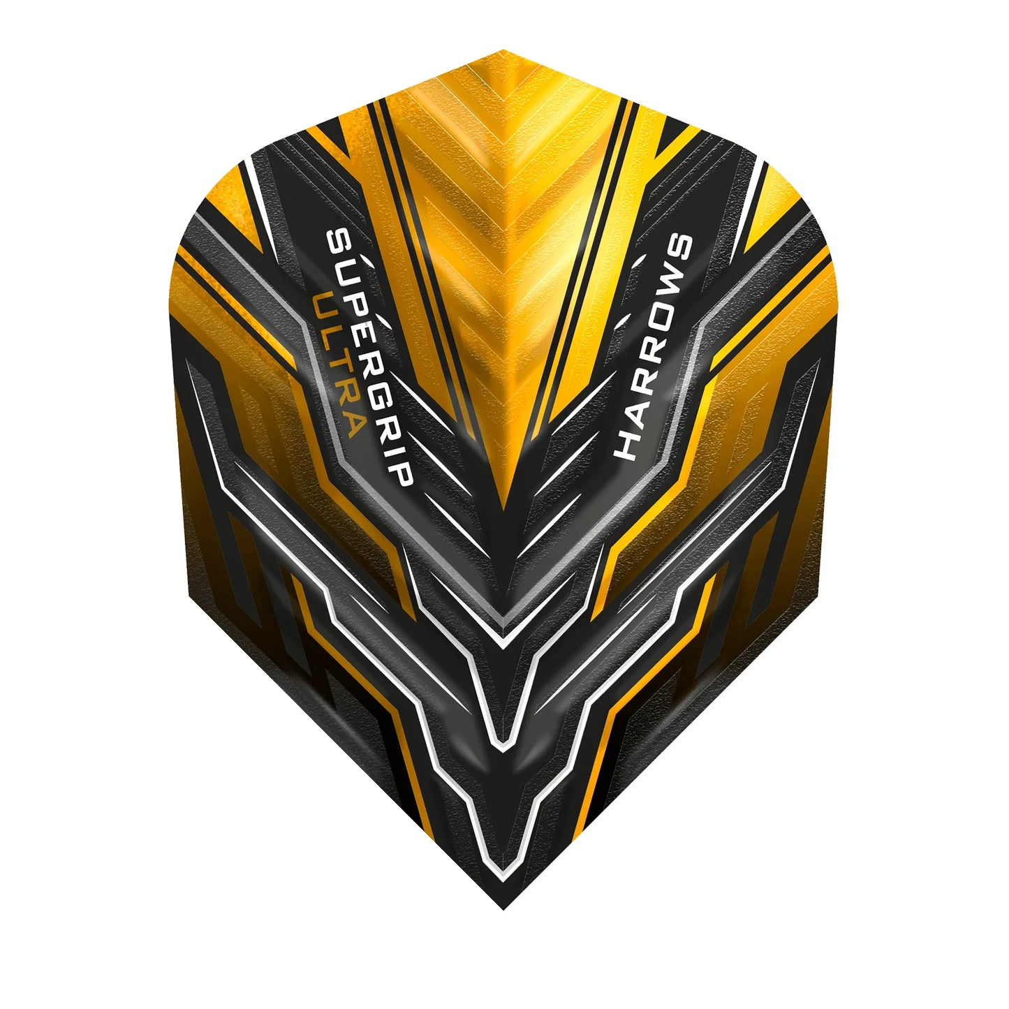 Harrows Supergrip Ultra Gold Dart Flights - "Featuring our unique Supergrip embossed pattern to increase shaft grip, these flights are printed on durable 100 micron metallic material and are available in 4 stunning colourways."