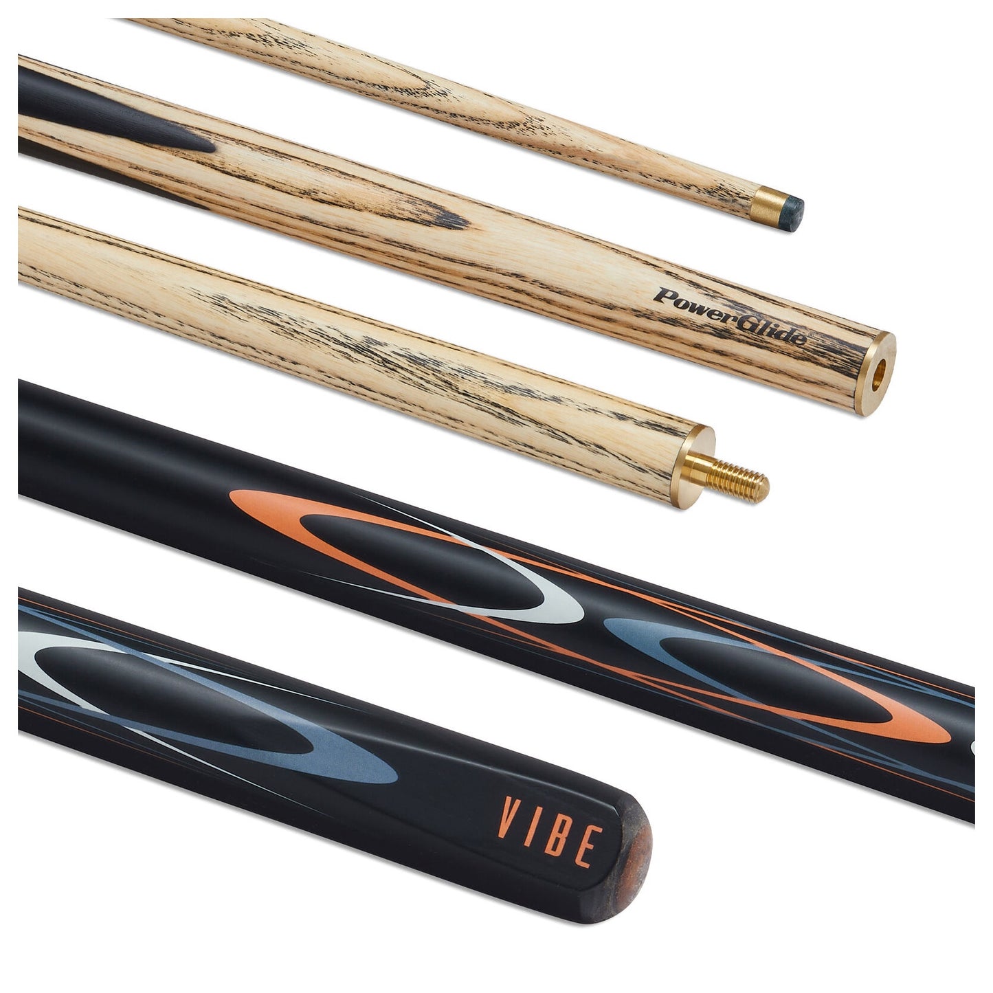 PowerGlide Vibe Centre Jointed Snooker Cue – 2 piece Cue with an Ash shaft, hardwood butt and decal design.
