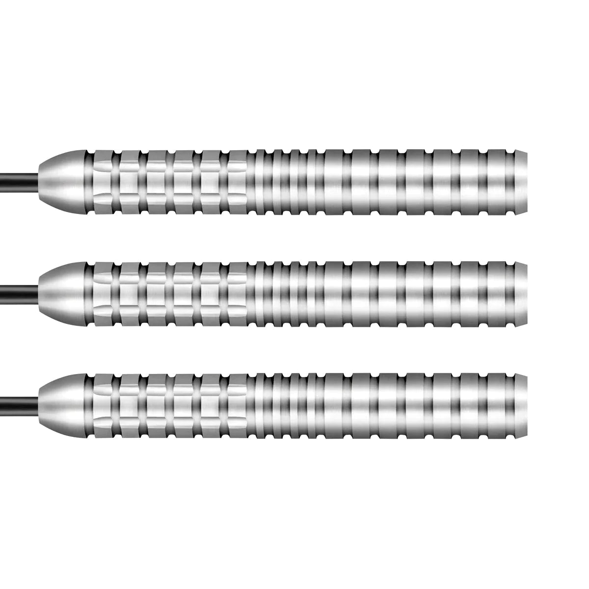 The new Bully Boy on the block, this precision dart set is designed in New Zealand by Shot’s Dartisans in close collaboration with 2023 PDC World Champ Michael Smith. This formidable 80% Tungsten barrel has a super dependable grip, and precision engineering that champs rely on to fly true. Complete with tough aluminium shafts with O Rings and Bully Boy design standard flights. This barrel design is loaded with an array of options for finger placements. Precision cut rings at the center give reference and define the edges of the front and rear grip zones. At the rear, wide rings give a consistent hold.Dimensions: