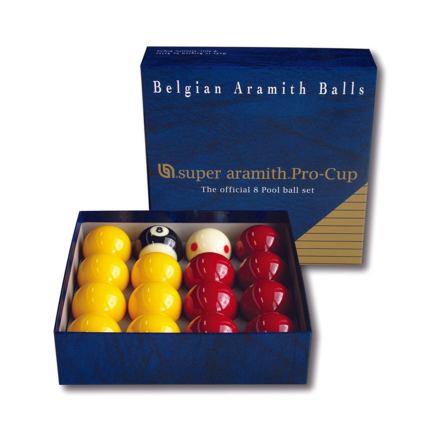 Trusted by 80% of players worldwide, Aramith balls are made in Belgium from premium phenolic resin for unmatched durability and performance. Includes a Pro-Cup cue ball with 6 red dots for spin control.
