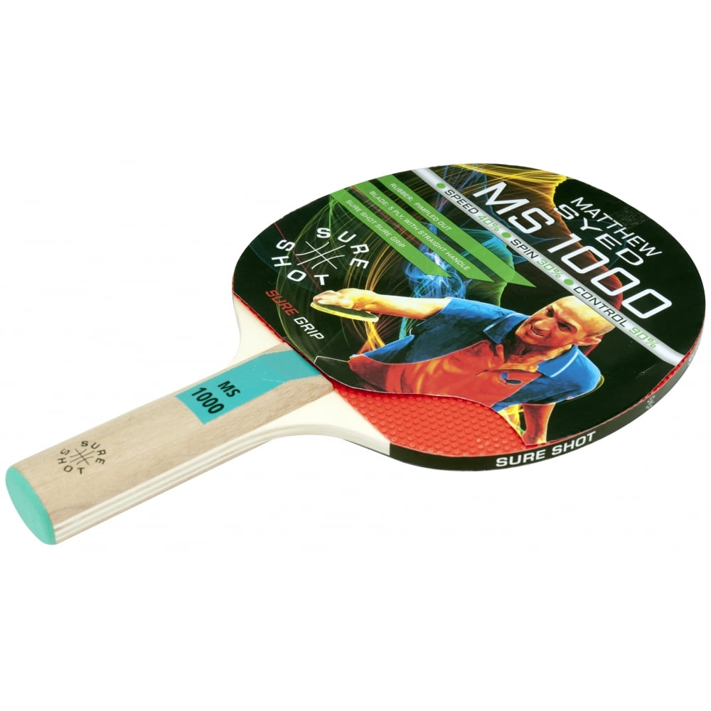 Sure Shot Matthew Syed 1000 Table Tennis Bat - Matthew Syed, Britain’s most famous and successful table tennis player of the modern era. Four times English and three times Commonwealth Champion, Matthew Syed has thrilled crowds throughout the world with his spectacular mix of long distance defence and sharp attack.