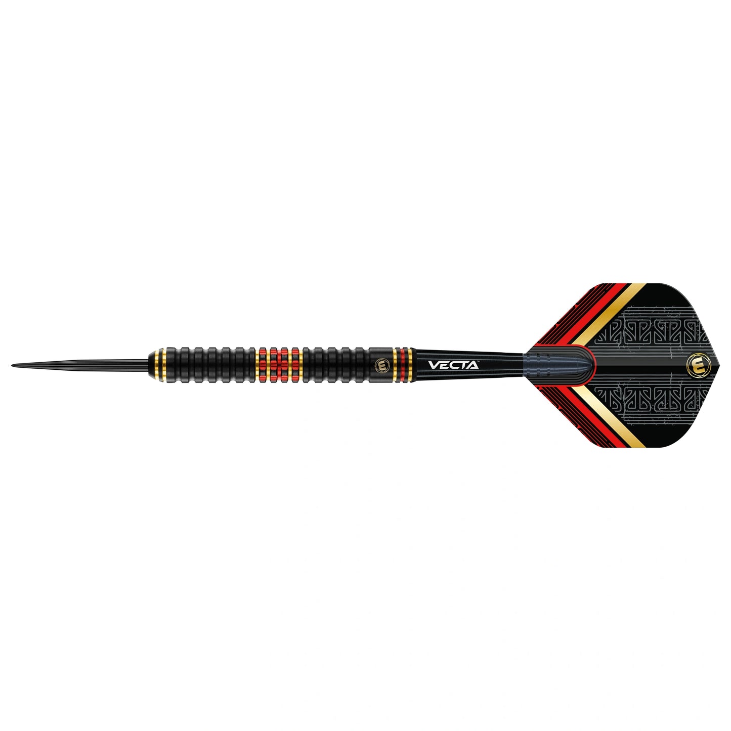 Epitomising the evolution of darts innovation and heritage in the modern technological era, Valhalla creates the darting headlines yet to be written. A stunning combination of Onyx PVD, red-gold detailing and the latest Torque Force enabled milled grip control. Darting excellence in every detail.