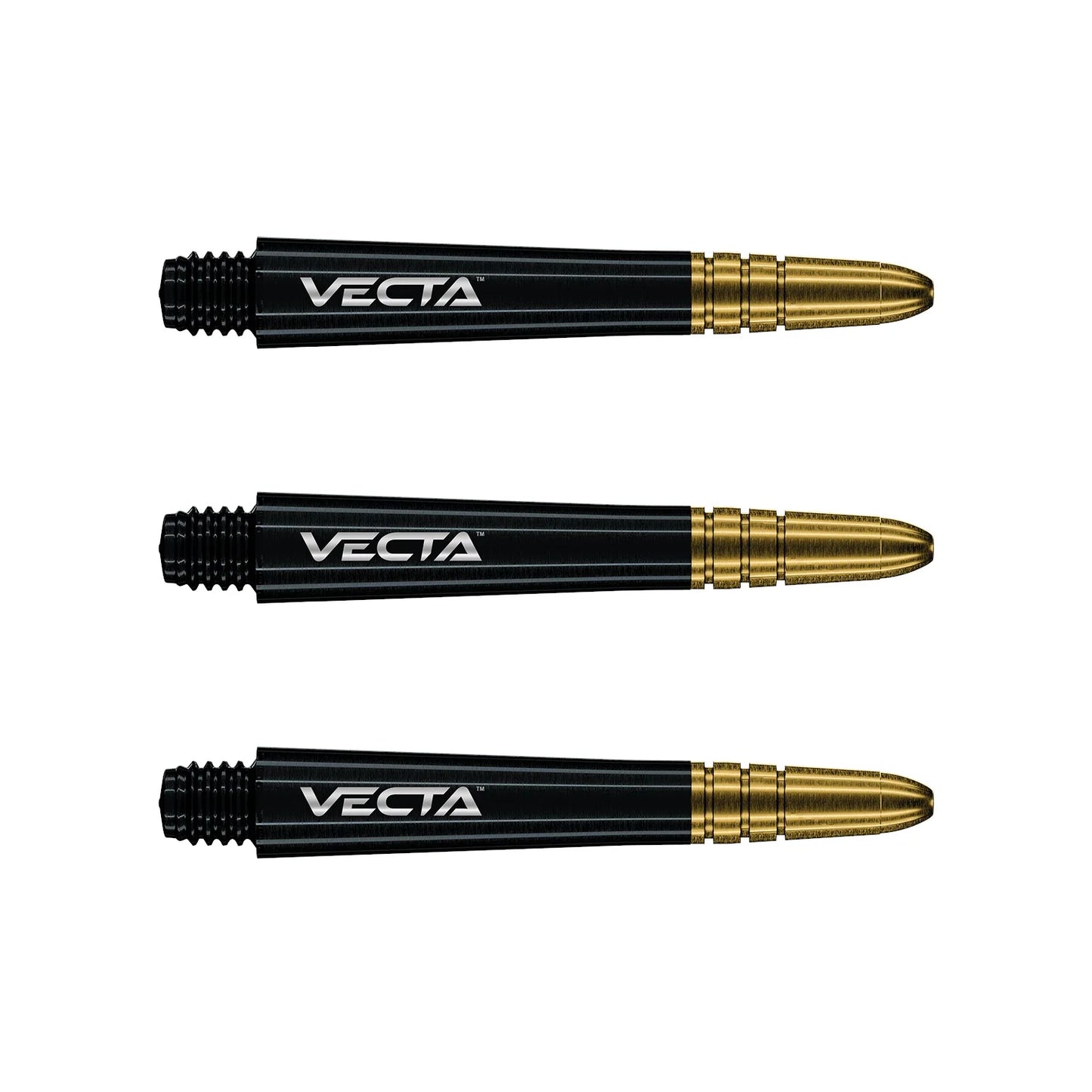Winmau Vecta Intermediate Black Gold Polycarbonate Dart Stems - Tour Calibre composite shafts combine a high impact Polycarbonate body fused with low density aluminium alloy tips. Streamlined, profiled and machined with extra deep slots for ultimate flight retention. Tested by Winmau professional players, the new Vecta shafts provide ultimate in-flight stability.